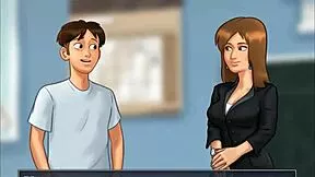 In milfy city, big tits teen violet with perfect big ass massages and gives tit job to big cock guy until he cums on her boobs.