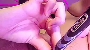Bunny Shaves Hairy Pussy Close-Up Exposing Huge Wet Hole