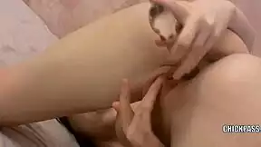 petite brunette enjoys soft dildo play with gorgeous bestie