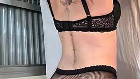 behind the scenes goth inked girl teases dreadlocks lingerie for big dildo anal solo