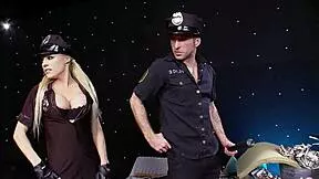 whoa fit blonde cop with fake tits rails coworker then gulps his hot load
