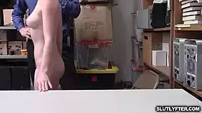 Tiny blonde teen shoplifter strikes a deal with the security officer at work.