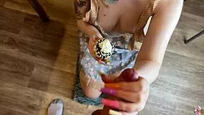 Couple skips cooking for rough kitchen fuck she eats cumcake
