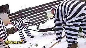 old prisoners swarm petite new guard for savage gangbang bukkake and piss shower frenzy