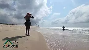 Hot Damn! Amateur Cuckold Wife Flashes Hairy Pussy and Masturbates on Beach!