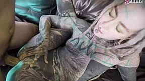 Tattooed Goth Babe Rides Big Cock Cowgirl Then Doggystyle Sloppy!