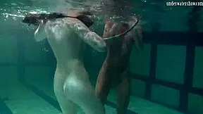Check out ivetta, katka, and barbara as hot underwater lesbians at the pool! 🏊♀️