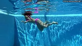 ivetta splashes around in the pool, drawing every eye with her underwater moves.
