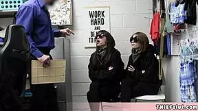 Kitty valance protests topless in the mall. Officer suspects shoplifting and punishes her hard.