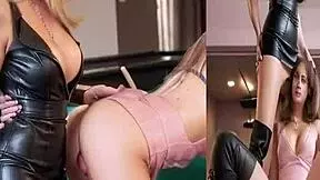 EXIT INTERVIEW TURNS INTO LEATHER CLAD COUGAR FFM THREESOME!