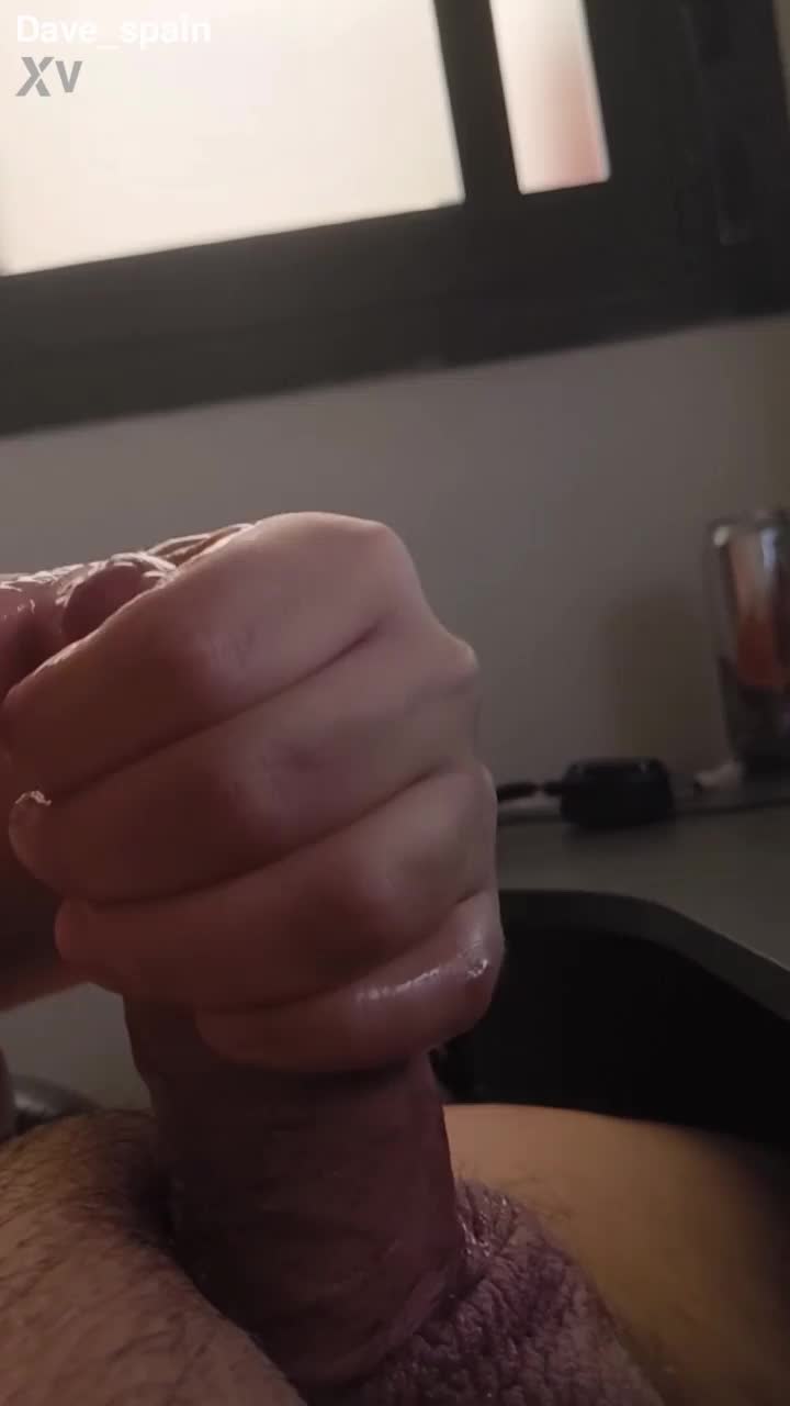 I blast cum from my big cock while masturbating